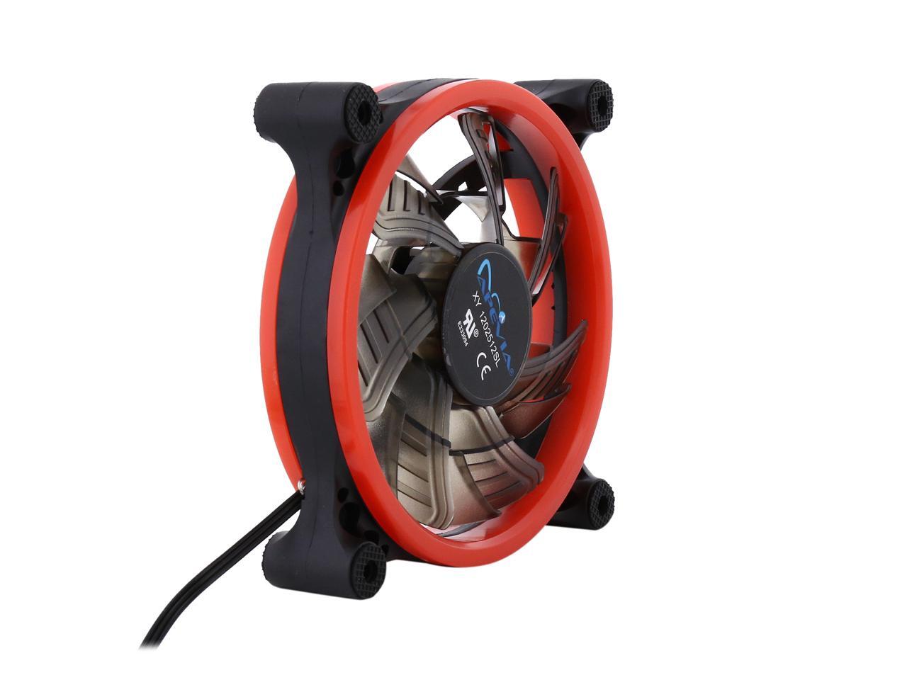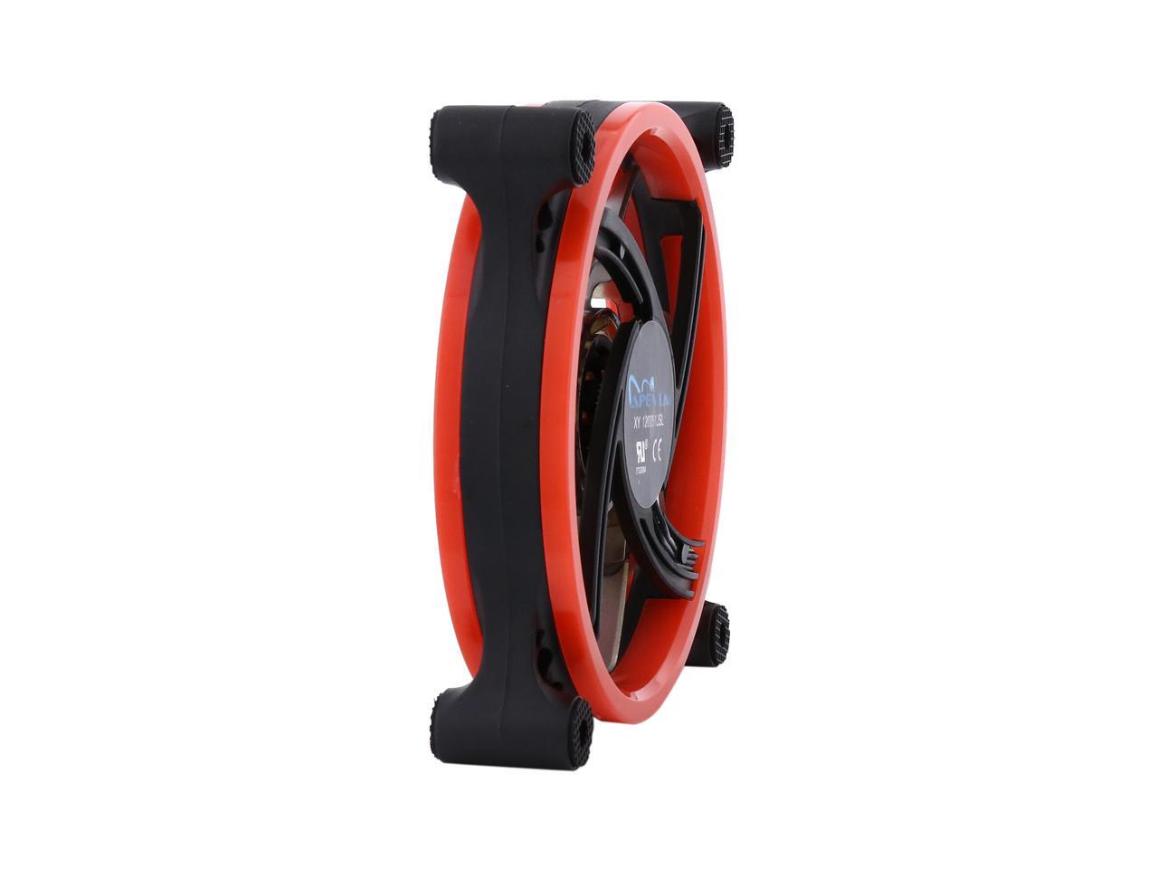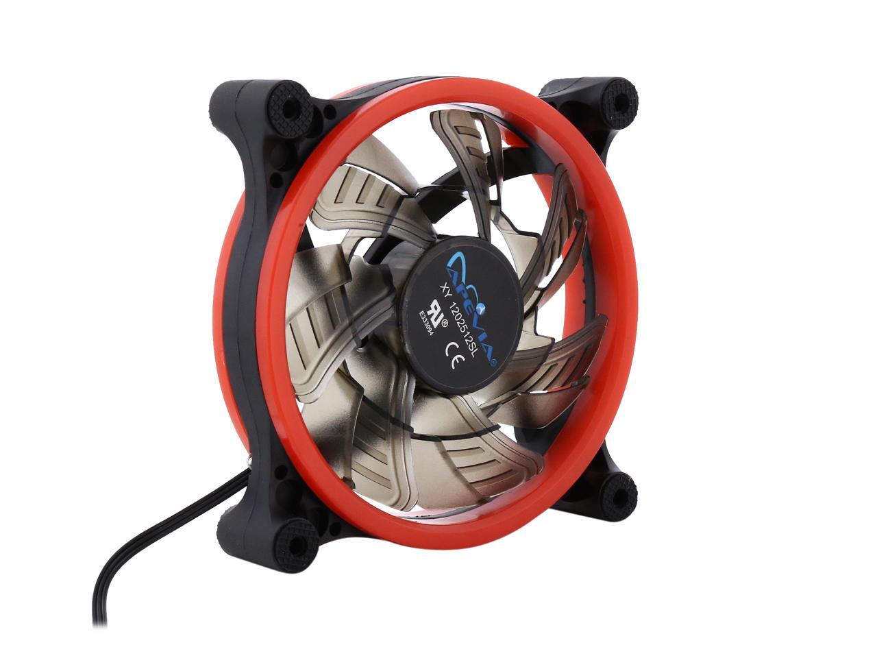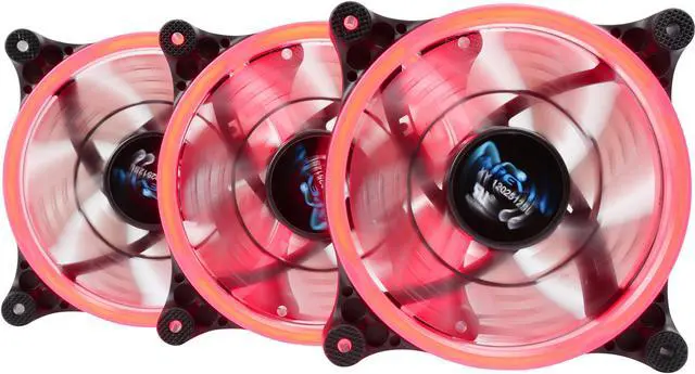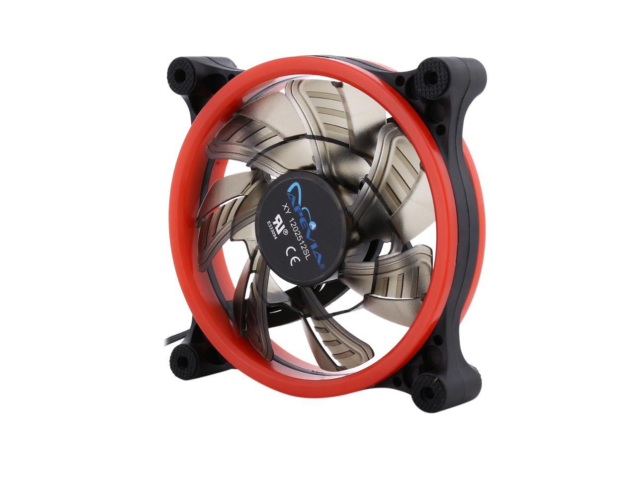 | Features | Apevia 120mm case fan with 32 red led lights (3 pk) Two colored rings for a bright glow 32 leds within the rings give a solid red glow to the fan 7 stylish black blades and black frame Four anti-vibration pads to reduce noise |