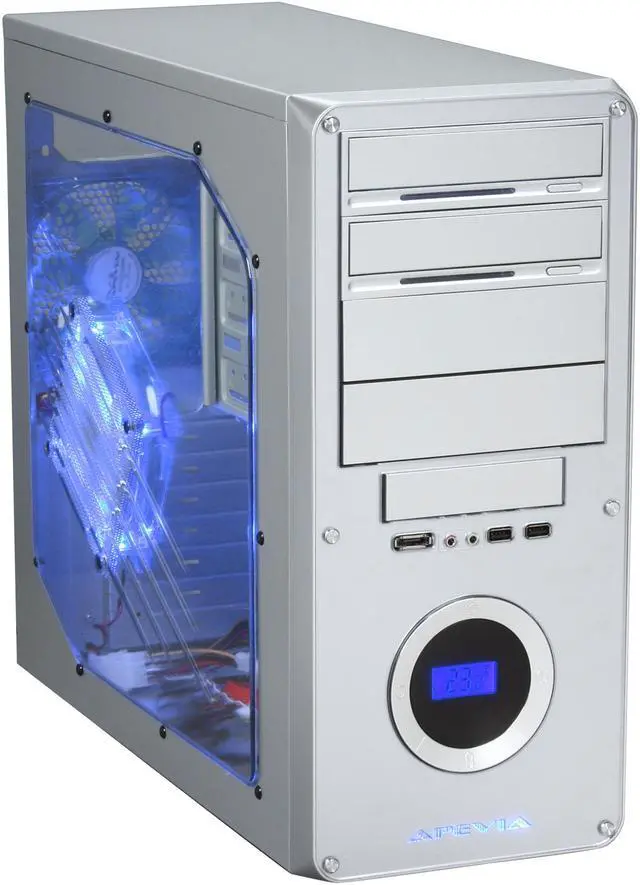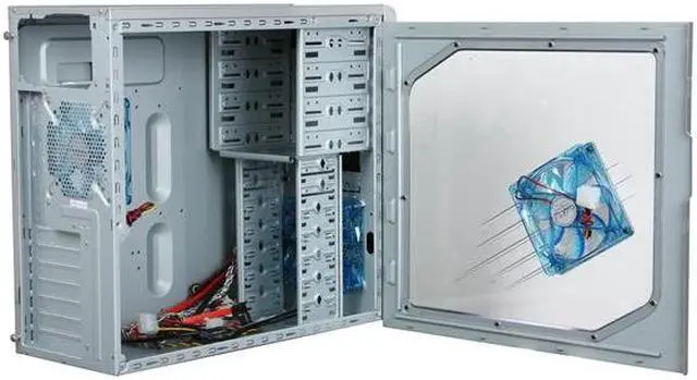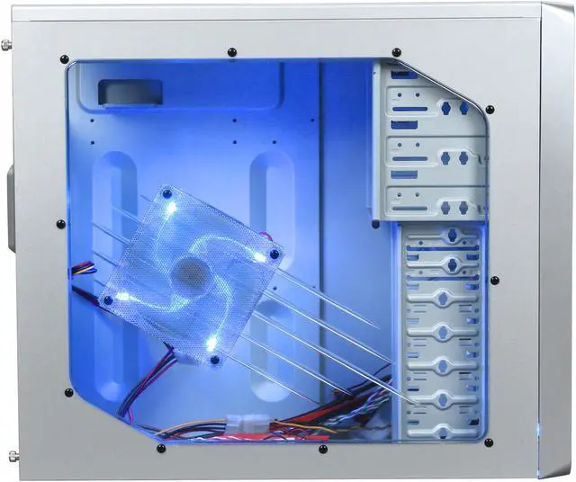 • neweggTransparent Side WindowThe transparent side window delivers a direct view of inner system, and the blue led delivers mystic ambience for eye-catching fun.