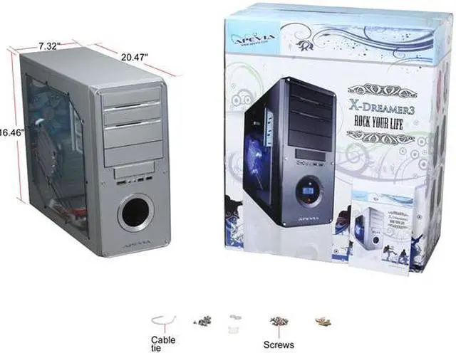 • neweggEfficient VentilationThe APEVIA X-Dreamer 3 comes equipped with one 120mm front fan, one 120mm side fan and one 120mm rear fan for efficient ventilation and effective system cooling.