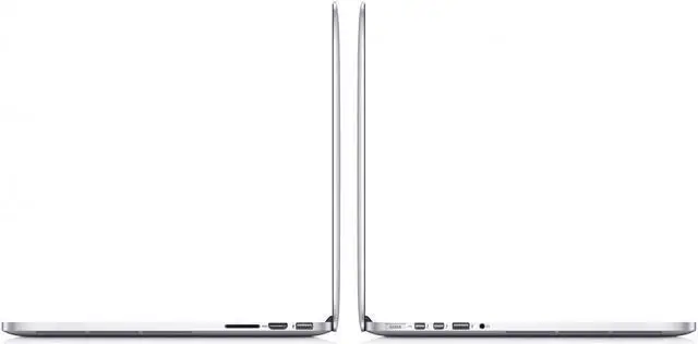 Connectivity includes 802.11ac Wi-Fi, Bluetooth 4.0, two USB 3.0 ports, two "Thunderbolt 2" ports, an HDMI port, an audio in/out port, and an SDXC card slot.
