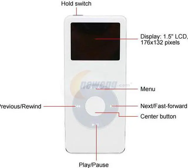 | Additional Features | USB through Dock connector Stores data via USB flash drive Support for display of multiple languages and characters simultaneously Skip-free playback Upgradable firmware enables support for future audio formats Customize main menu Create multiple On-the-Go playlists Adjust audiobook playback speed Clicker playback through headphones Rate songs Shuffle songs or albums Repeat one or all Sound Check on or off Backlight timer Alarms on, off or silent Sleep timer Date and time Display time in menu bar Contacts sort and display by first or last names Clicker on or off |