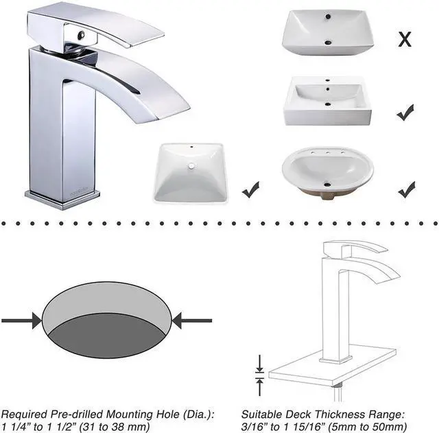 Compatible with under-mount sink or above counter sink with 1 or 3 holes; Tool-free Installation within Minutes, features unique Square Nut for fast DIY installation