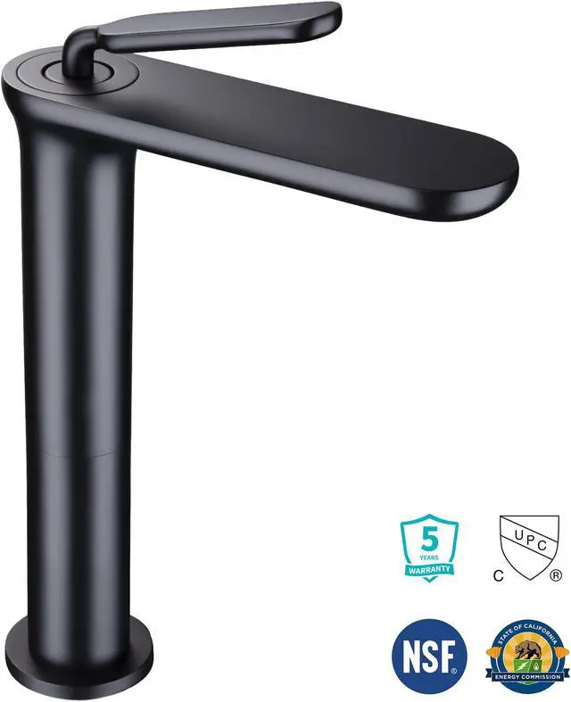 - Industrial Style Faucet - Aquaterior Single Hole Bathroom Vessel Faucet in brushed matte black finish features clean lines & smoothly rounded edges, adding a chic, new look with an industrial appeal to your bathroom; Designed with a 8 1/2" high spout leaving plenty of space for handwashing (An elevated 8 1/2" height for above-mount basins), perfect for use in hotels, restaurants, shopping malls, and public places