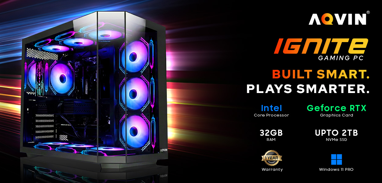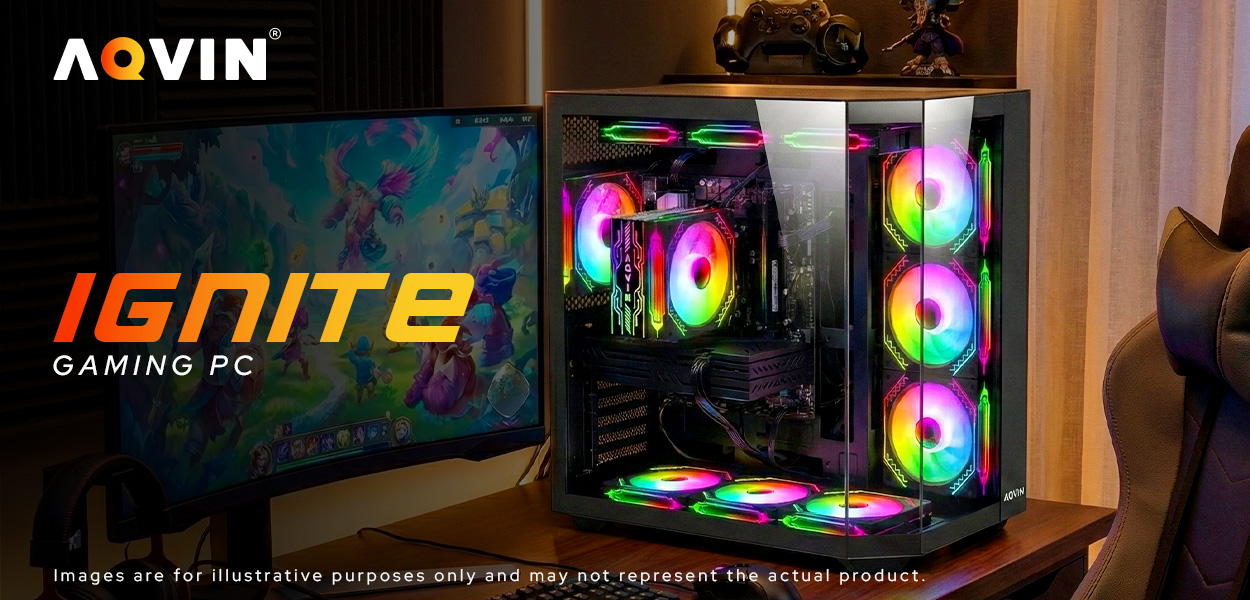 Packaging| Package Contents | AQVIN Ignite Gaming PC, RGB Keyboard and Mouse, Power Cord |