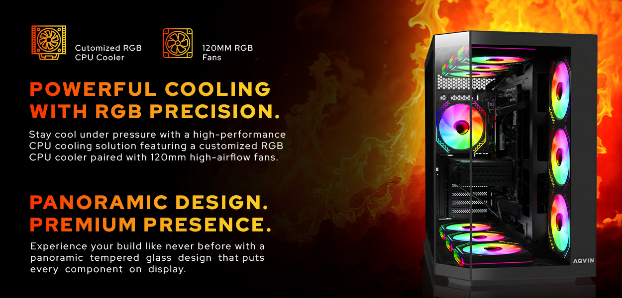 Packaging| Package Contents | AQVIN Ignite Gaming PC, RGB Keyboard and Mouse, Power Cord |