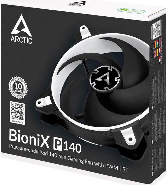 The Bionics P140 fan features Completely redesigned fan blades and is optimized for high static pressure. Thus, the Bionics P140 is especially effective when used on heatsinks and with higher air resistance. The wide RPM range from 200 to 2100 RPM can be regulated seamlessly and synchronously with other fans thanks to ARCTIC PWM Sharing Technology (PST). the newly developed motor with a low coil temperature significantly increases the life span of the fan.