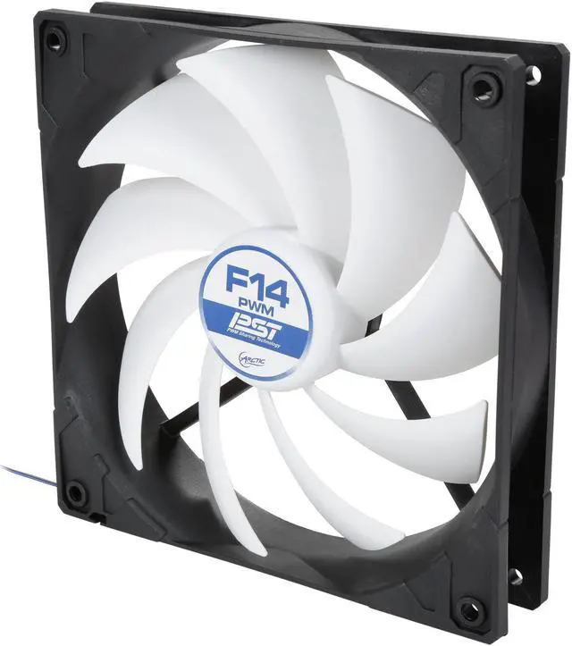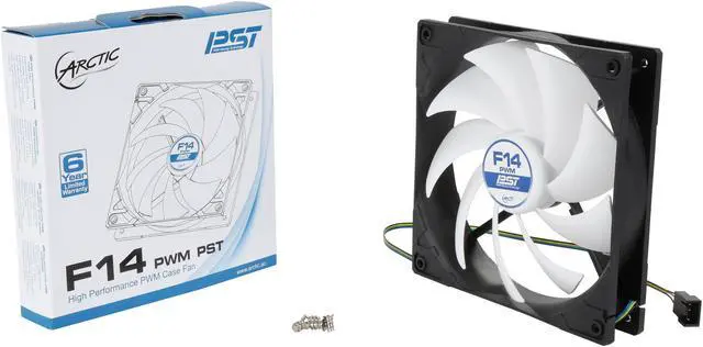Great for new build or system upgrade, the ARCTIC F14 PWM PST 140mm case fan delivers superb cooling yet whisper-low acoustics at great value. It can be mounted anywhere that accepts a 140mm fan, and can be used as intake or exhaust fan based on your air path configuration. With semi passive design, this PWM fan stops at idle or light load level for complete silence. It also comes with a 4-pin PWM male PWM connector, in addition to a 4-pin female connector that plugs onto the motherboard, so you can daisy-chain a CPU cooler or more units of this fan to control all of them in sync. Plus, with a quiet fluid dynamic bearing, this case fan allows reliable, trouble-free performance you can count on for years to come.