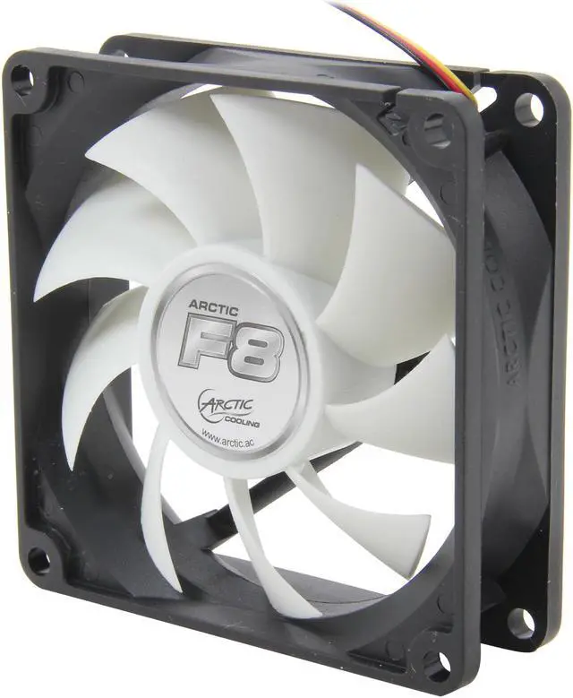 v:* { behavior: url(#default#VML) }o:* { behavior: url(#default#VML) }.shape { behavior: url(#default#VML) } Arctic Cooling F8 80mm Low Noise PC Computer Case Fan (Black / White) - Arctic Cooling F8 Product Dimensions (L x W x H) 80 L x 80 W x 25 H mm Fan 80 mm, 2,000 RPM Air Flow 31 CFM / 52.7 m^3/h Bearing Fluid Dynamic Bearing Noise Level 0.3 Sone Current / Voltage 0.16A/ 12V Net Weight 71 g Long Service Life The Fluid Dynamic Bearing comes with an oil capsule that avoids lubricant leakage. Thus this bearing is as quiet as a sleeve bearing but comes with a significantly higher service life Innovative Design Enables Quiet and Efficient Ventilation The innovative design of the fan blades improves the air flow and facilitates a highly efficient ventilation. The impeller was designed with a focus on minimzing the noise level yet delivering the desired airflow and pressure. Two Way installation