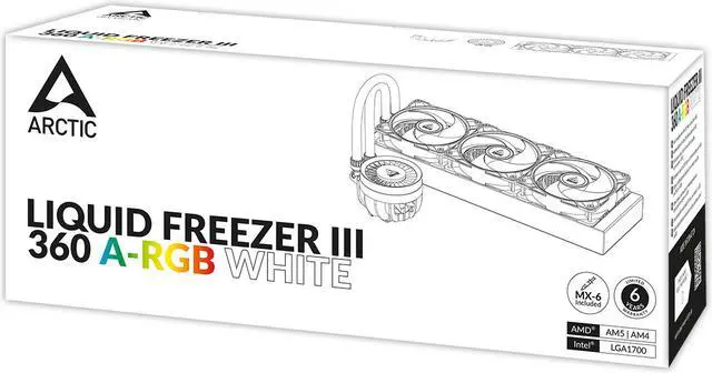 The Liquid Freezer III offers outstanding cooling performance in four different sizes and three variants. While the Black version is completely black, the A-RGB versions are available in black or white and have digitally addressable lighting for the pump head and radiator fans. With radiator sizes of 240, 360, 280 and 420, the Liquid Freezer III offers the ideal combination of performance, technology and design for everyone!