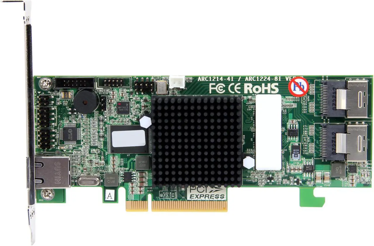| Features | ARM-based storage I/O processor ARC-1224-8I supports up to 8 x 6Gb/s SATA HDDs Multi-adapter support for large storage requirements BIOS boot support for greater fault tolerance BIOS PnP (plug and play) and BBS (BIOS boot specification support Support EFI BIOS for Mac Pro NVRAM for RAID event & transaction log Redundant flash image for controller availability Battery Backup Module (BBM) ready (Optional) Model: ARC-6120BA-T121. |