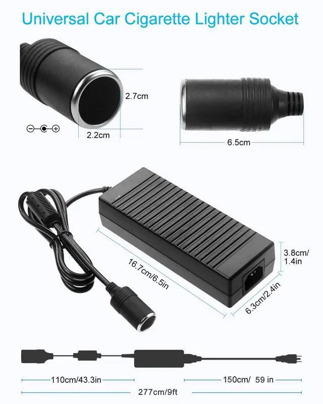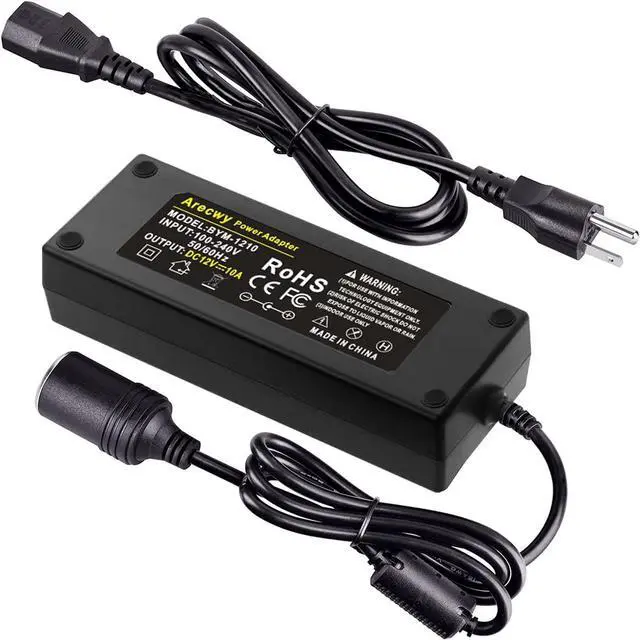 Arecwy 10A 120W adapter, 100V ~ 240V mains to 12V DC Power supply (10A) suitable for converting any 100V~240V AC household current to 12V DC power; the unique female cigar lighter socket is beneficial to allow many vehicle electronics to be used at home or in other environments.