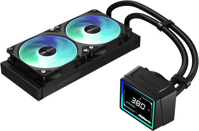 ASRock AIO Challenger 240 Digital 27mm radiator, 3" Digital Display w/ ARGB, ARGB Hub-lighting fan, black version