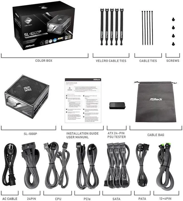 ASRock Steel Legend SL-1000P 1000W 80 PLUS GOLD & Cybenetics PLATINUM Full Modular Power Supply