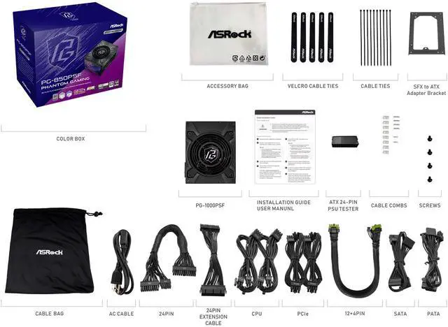 ASRock Steel Legend PG-850PSF 850W 80 PLUS GOLD & Cybenetics PLATINUM Full Modular Power Supply
