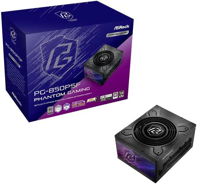 ASRock Phantom Gaming PG-850PSF 850W 80 PLUS GOLD & Cybenetics PLATINUM Full Modular Power Supply, ATX3.1 & PCIe5.1 Ready with Dual Color 12V-2x6 Cable, 10 Years Warranty