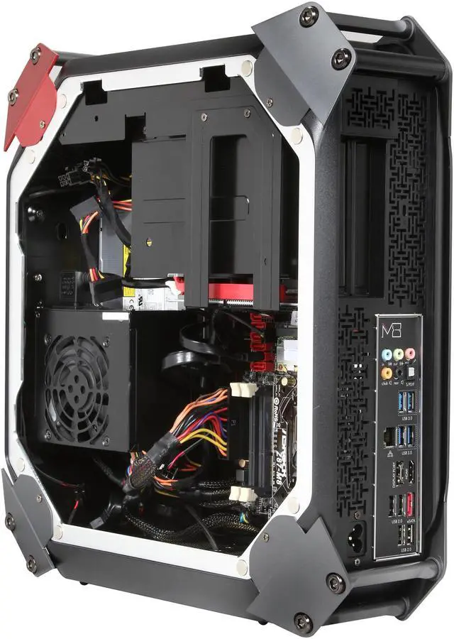 This is not your typical gaming rig. This barebones system has every essential component packed inside a designer mini-ITX case with advanced flexibility for your future upgrades. Customize your own gaming machine by simply adding a CPU, memory, PCIe x16 graphics card, a set of 3.5" hard drives or four sets of 2.5" solid state drives, powered by a compact 450W SFX power supply unit. Experience the best visual performance through a discrete graphics card (dual slots supported), and a sensational audio experience through built-in Creative Sound Core3D 7.1-channel technology.