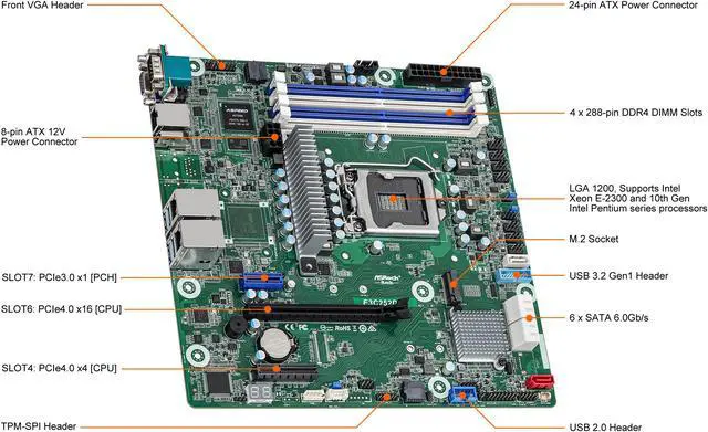 | CPU Type | Supports Intel Xeon E-2300 and 10th Gen Intel Pentium series processors |