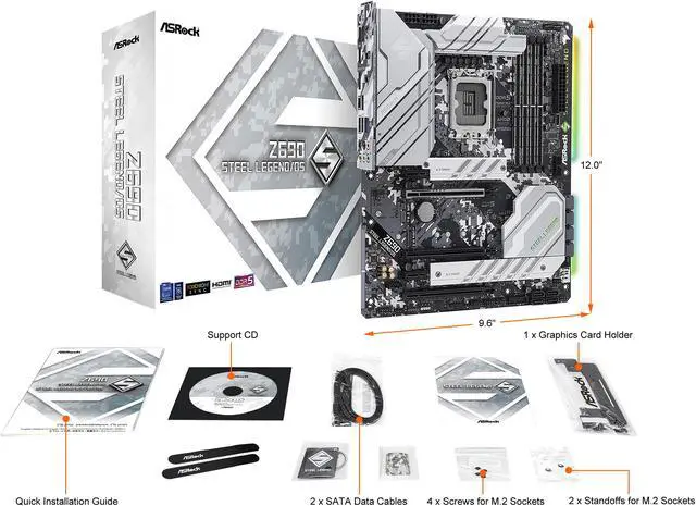 | Package Contents | Accessories - Quick Installation Guide, Support CD - 2 x SATA Data Cables - 4 x Screws for M.2 Sockets - 2 x Standoffs for M.2 Sockets - 1 x Graphics Card Holder |