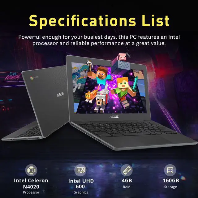 ASUS Chromebook C204 11.6" HD Rugged Chromebook, Intel Celeron N4020 Dual-Core, 4GB RAM, 192GB Storage(32GB eMMC+160GB Docking Station Set), Intel UHD Graphics 600, Wi-Fi, Chrome OS, Dark Gray