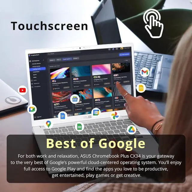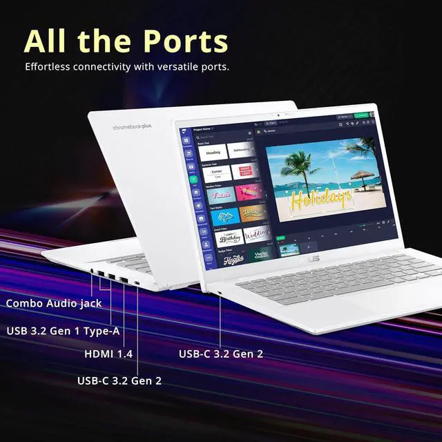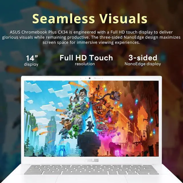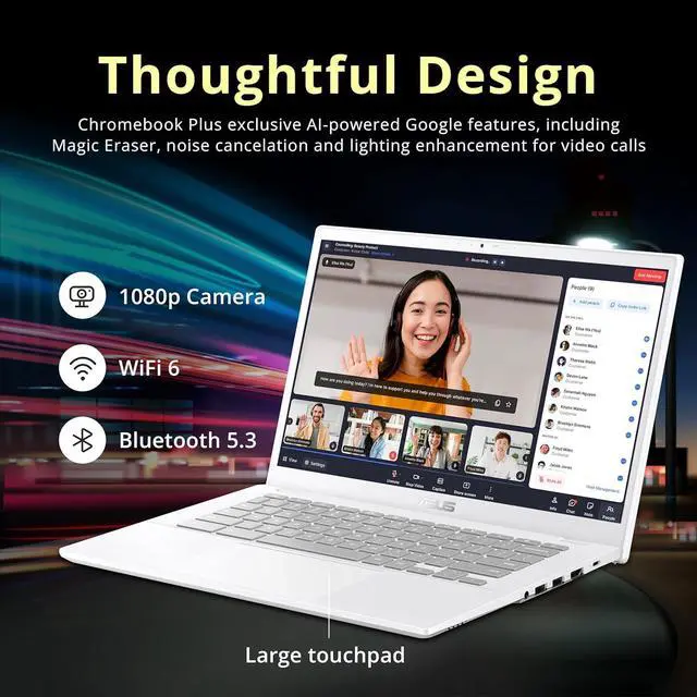 Asus Chromebook Plus 14" FHD Touchscreen Laptop, Intel i5 1335U, 8GB LPDDR5, 288GB Storage(128GB SSD+160GB Docking Station Set), Intel Iris Xe Graphics, 1080p Camera, Wi-Fi 6E, Chrome OS, White