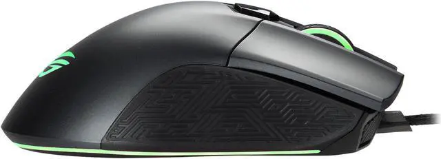 USB wired optical gaming mouse designed to fit all grips with clickable scroll wheel, DPI switch, and quick-release micro-USB