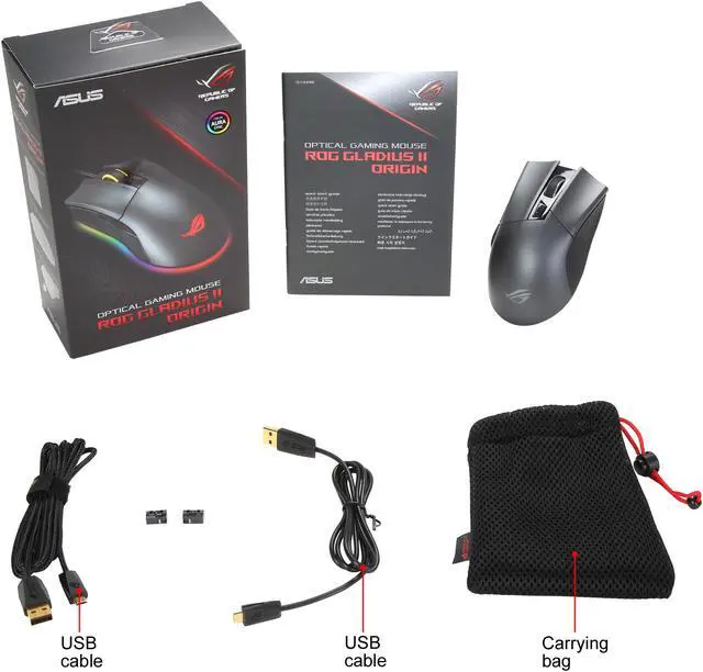 1 x 2-meter braided USB cable 1 x 1-meter regular rubber USB cable 2 x Japanese-made Omron switches 1 x ROG pouch 1 x ROG logo sticker