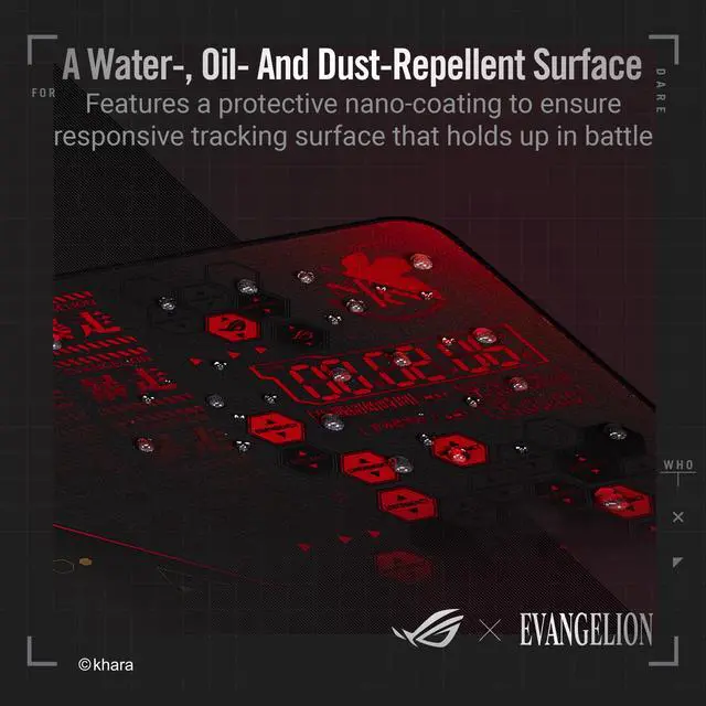 A Water-, Oil- And Dust-Repellent Surface - ROG Scabbard II EVA Edition is made of durable, oil-resistant woven fabric with industry-leading Grade 100 water-resistance certified by the American Association of Textile Chemists and Colorists (AATCC), so it's protected against accidental spills and easy to clean and maintain. It features a protective military-grade nano-coating* to ensure a consistent and responsive tracking surface.