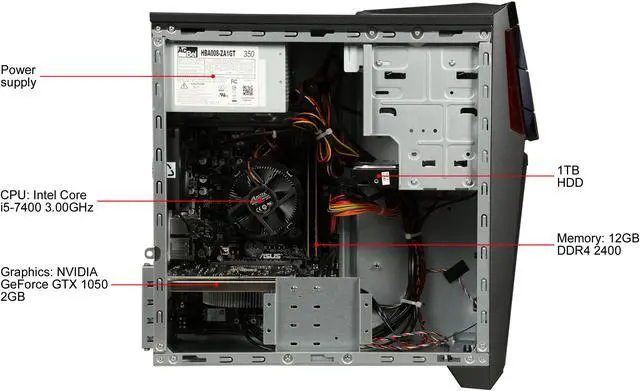 ASUS G11CD Gaming Desktop, Intel Core i5 7400 NVIDIA GeForce GTX 1050 12 GB DDR4 RAM 1 TB HDD Customizable RGB Lighting Mid Tower Windows 10 G11CD-BS51-GTX1050-CB English/French Bilingual