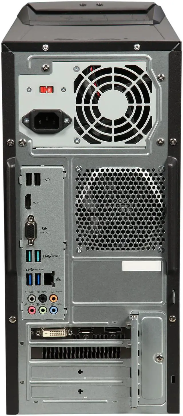 Extensive connectivity for peripherals and VR headsets also includes extra 5.25" and 3.5" bays, 802.11ac WiFi, Bluetooth 4.1, and a 24x DVD-RW Drive.