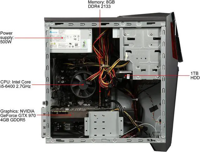 ASUS Desktop Computer G11CD-WS51 Intel Core i5-6400 8GB DDR4 1TB HDD NVIDIA GeForce GTX 970 Windows 10 Home 64-Bit