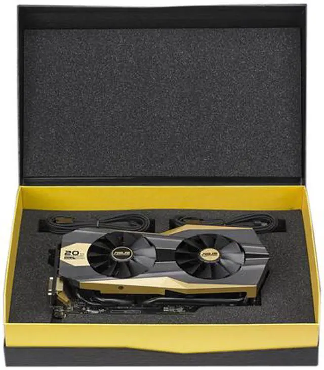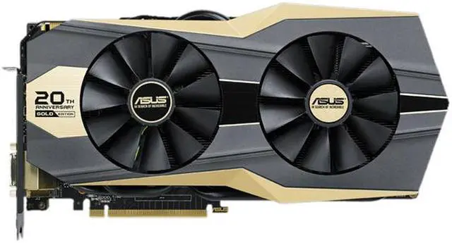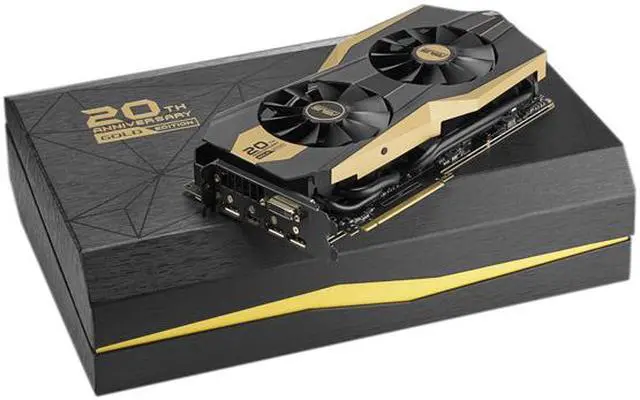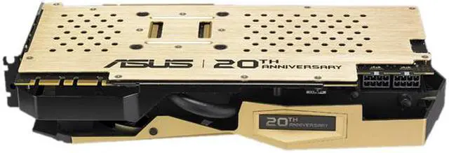 Exclusive DirectCU II cooling technology outperforms reference designs with an exclusive 10mm heatpipe that transports 40% more heat away from the GPU. Along with high-performance 0dB fan technology, the ASUS 20th Anniversary Gold Edition GTX 980 Ti lets you enjoy games like League of Legends® and StarCraft® in complete silence — because the fan stops completely when the GPU temperature remains below a set level.