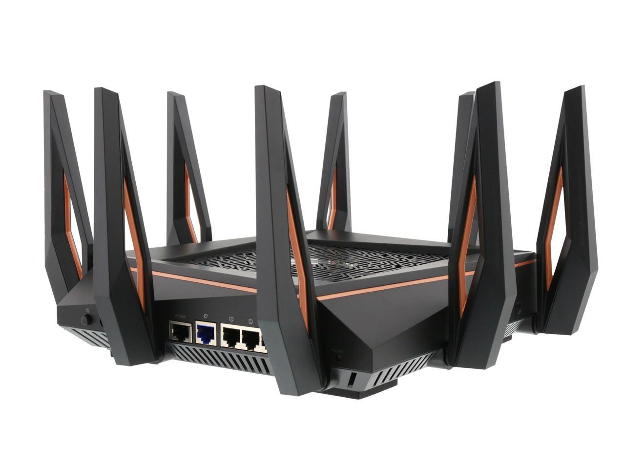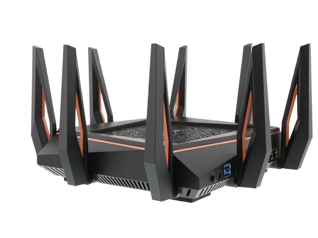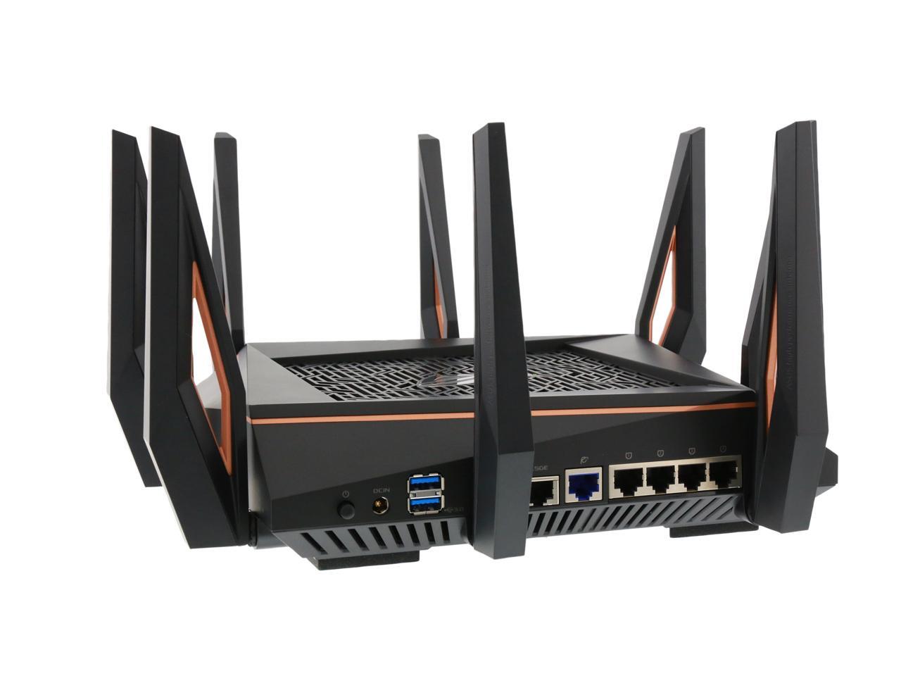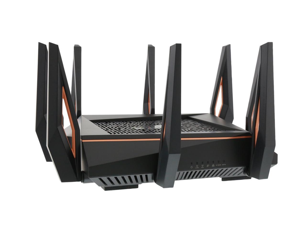 | Features | Link Aggregation - 802.3ad MU-MIMO Traffic Analyzer Adaptive QoS WTFast Gamers Private Network AiProtection Pro Parental Control Guest Network : 2.4 GHz x 3, 5 GHz-1 x 3, 5 GHz-2 x 3 VPN server : IPSec Pass-Through, PPTP Pass-Through, L2TP Pass-Through, PPTP Server, OpenVPN Server VPN client : PPTP client, L2TP client, OpenVPN client Mac OS Backup Enhanced media server (AiPlayer app compatible) - Image : Jpeg - Audio : mp3, wma, wav, pcm, mp4, lpcm, ogg - Video : asf, avi, divx, mpeg, mpg, ts, vob, wmv, mkv, mov AiCloud personal cloud service 3G/4G data sharing Printer Server - Multifunctional printer support (Windows only) - LPR protocol support Download Master - Support bt, nzb, http, ed2k - Support encryption, DHT, PEX and magnet link - Upload and download bandwidth control - Download scheduling AiDisk file server - Samba and FTP server with account management Dual WAN IPTV support Roaming Assist |