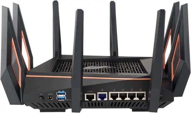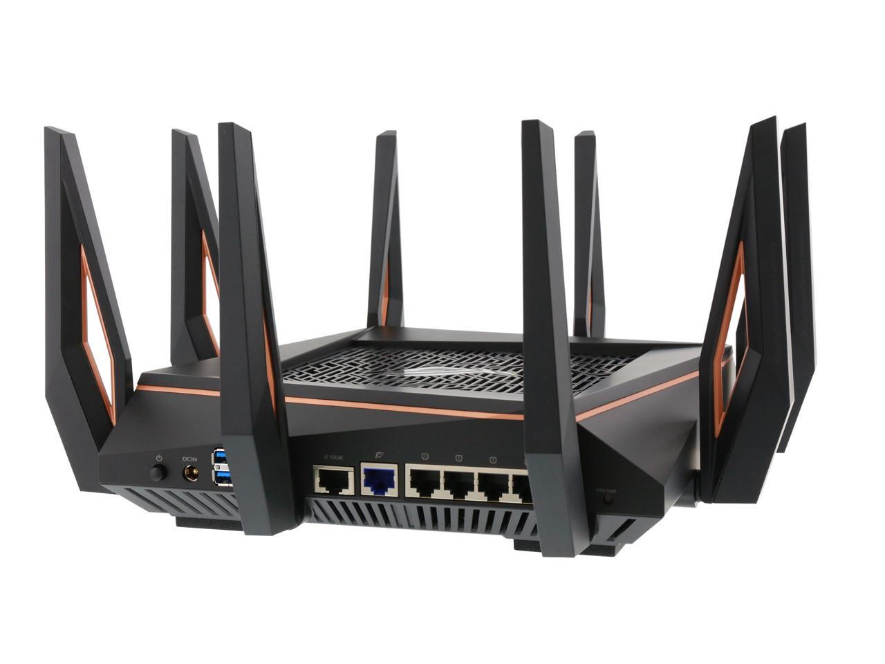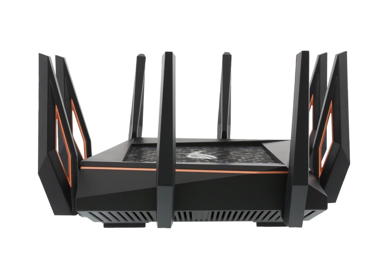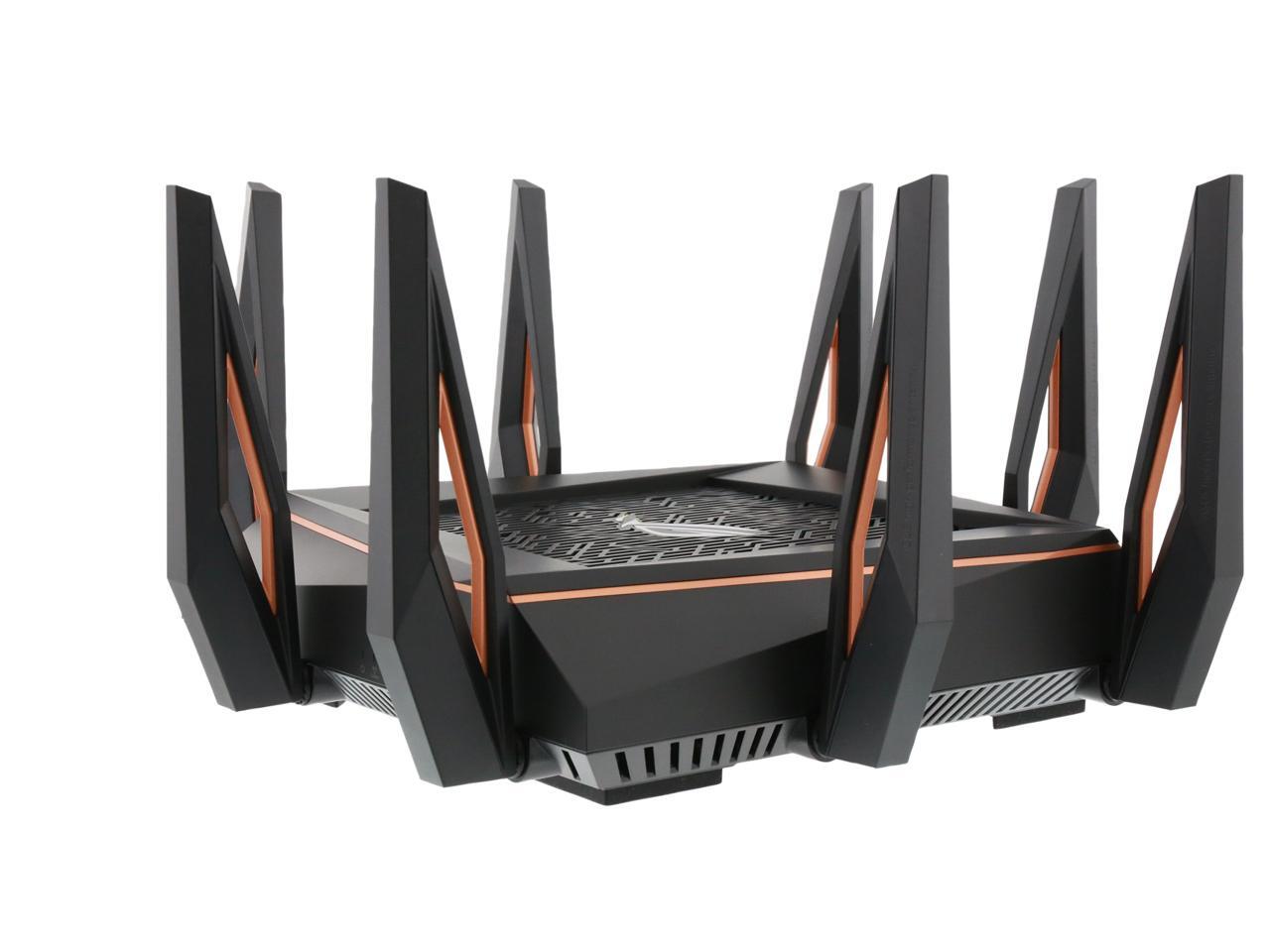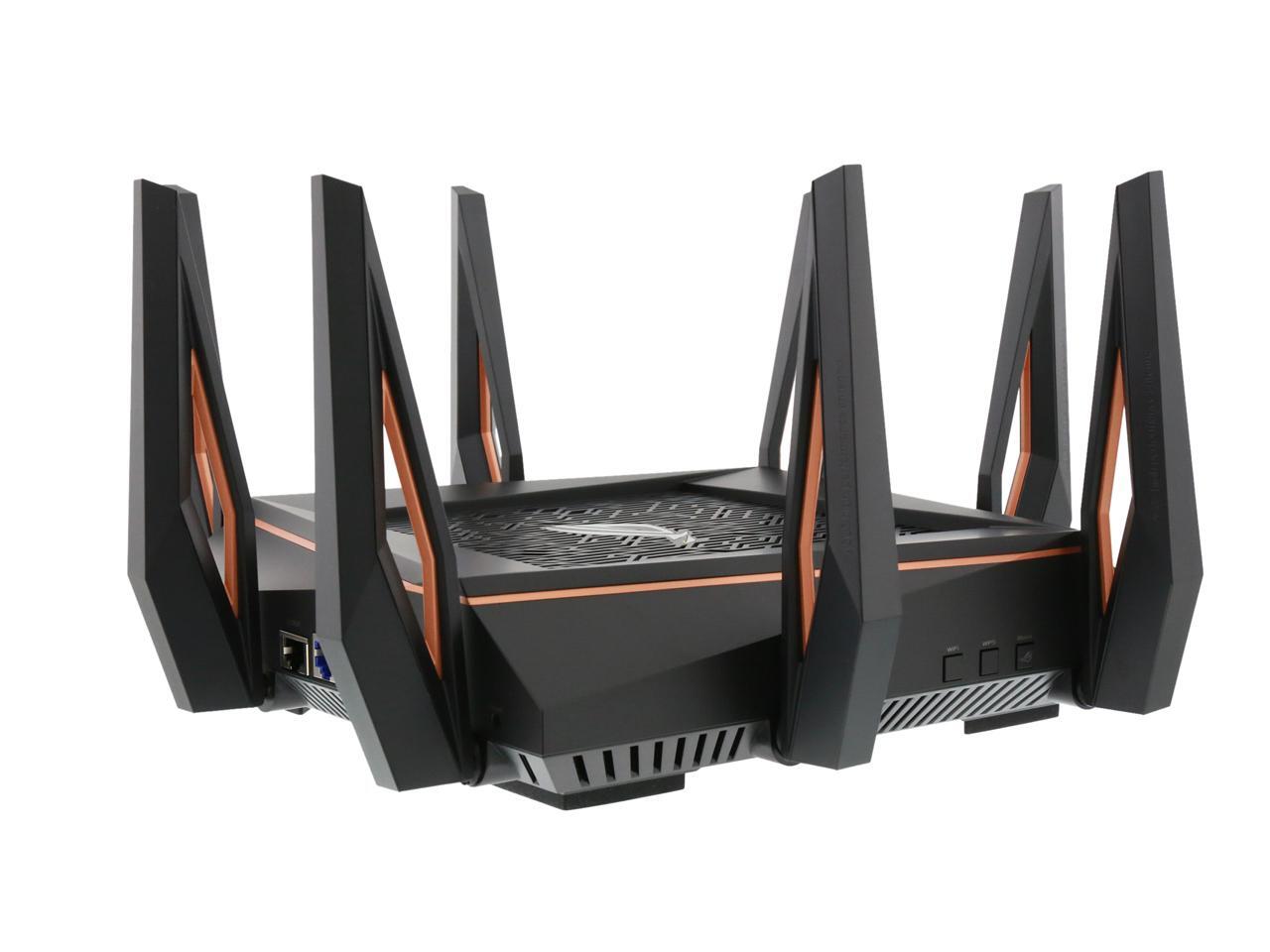 | Features | Link Aggregation - 802.3ad MU-MIMO Traffic Analyzer Adaptive QoS WTFast Gamers Private Network AiProtection Pro Parental Control Guest Network : 2.4 GHz x 3, 5 GHz-1 x 3, 5 GHz-2 x 3 VPN server : IPSec Pass-Through, PPTP Pass-Through, L2TP Pass-Through, PPTP Server, OpenVPN Server VPN client : PPTP client, L2TP client, OpenVPN client Mac OS Backup Enhanced media server (AiPlayer app compatible) - Image : Jpeg - Audio : mp3, wma, wav, pcm, mp4, lpcm, ogg - Video : asf, avi, divx, mpeg, mpg, ts, vob, wmv, mkv, mov AiCloud personal cloud service 3G/4G data sharing Printer Server - Multifunctional printer support (Windows only) - LPR protocol support Download Master - Support bt, nzb, http, ed2k - Support encryption, DHT, PEX and magnet link - Upload and download bandwidth control - Download scheduling AiDisk file server - Samba and FTP server with account management Dual WAN IPTV support Roaming Assist |