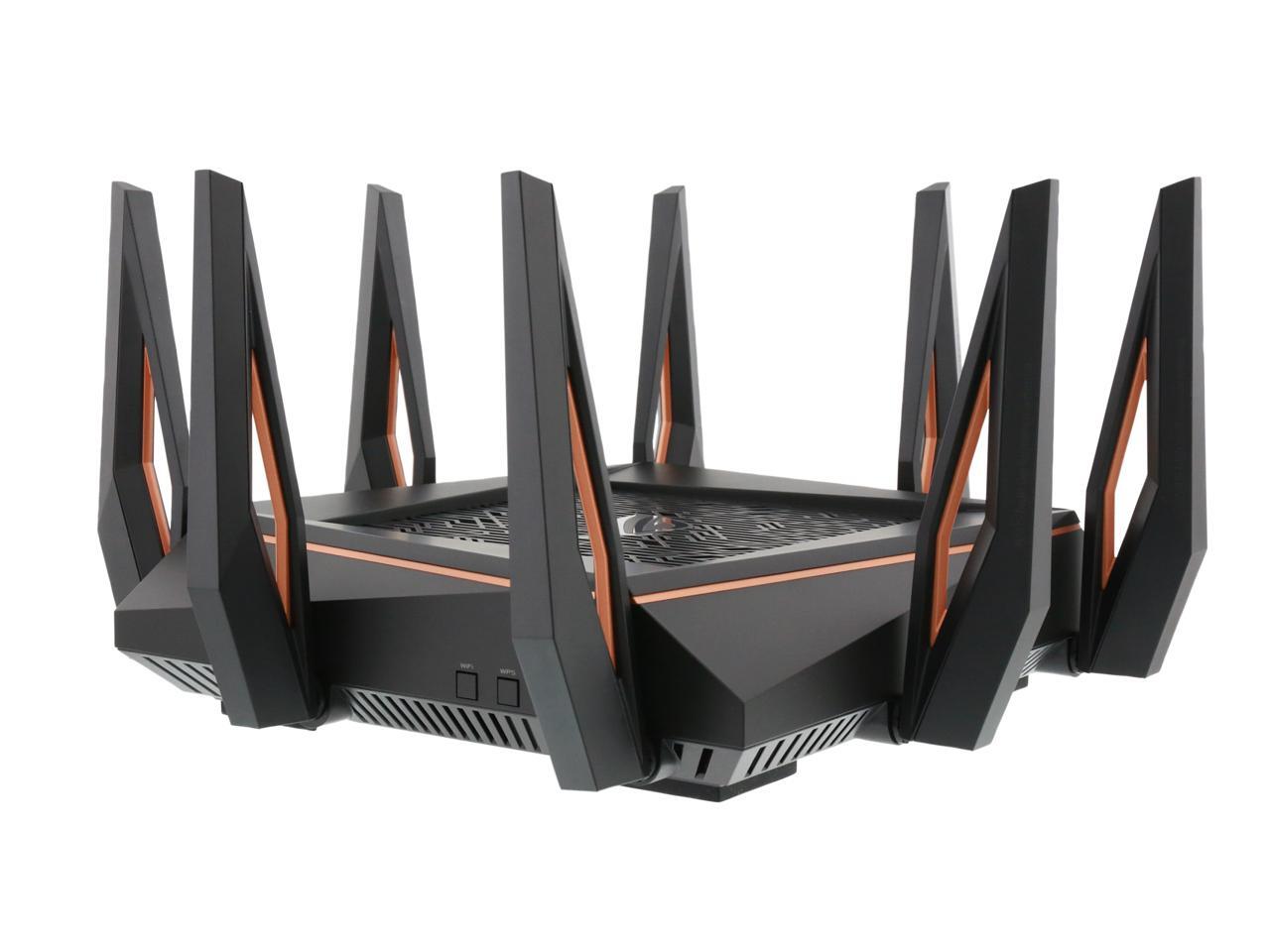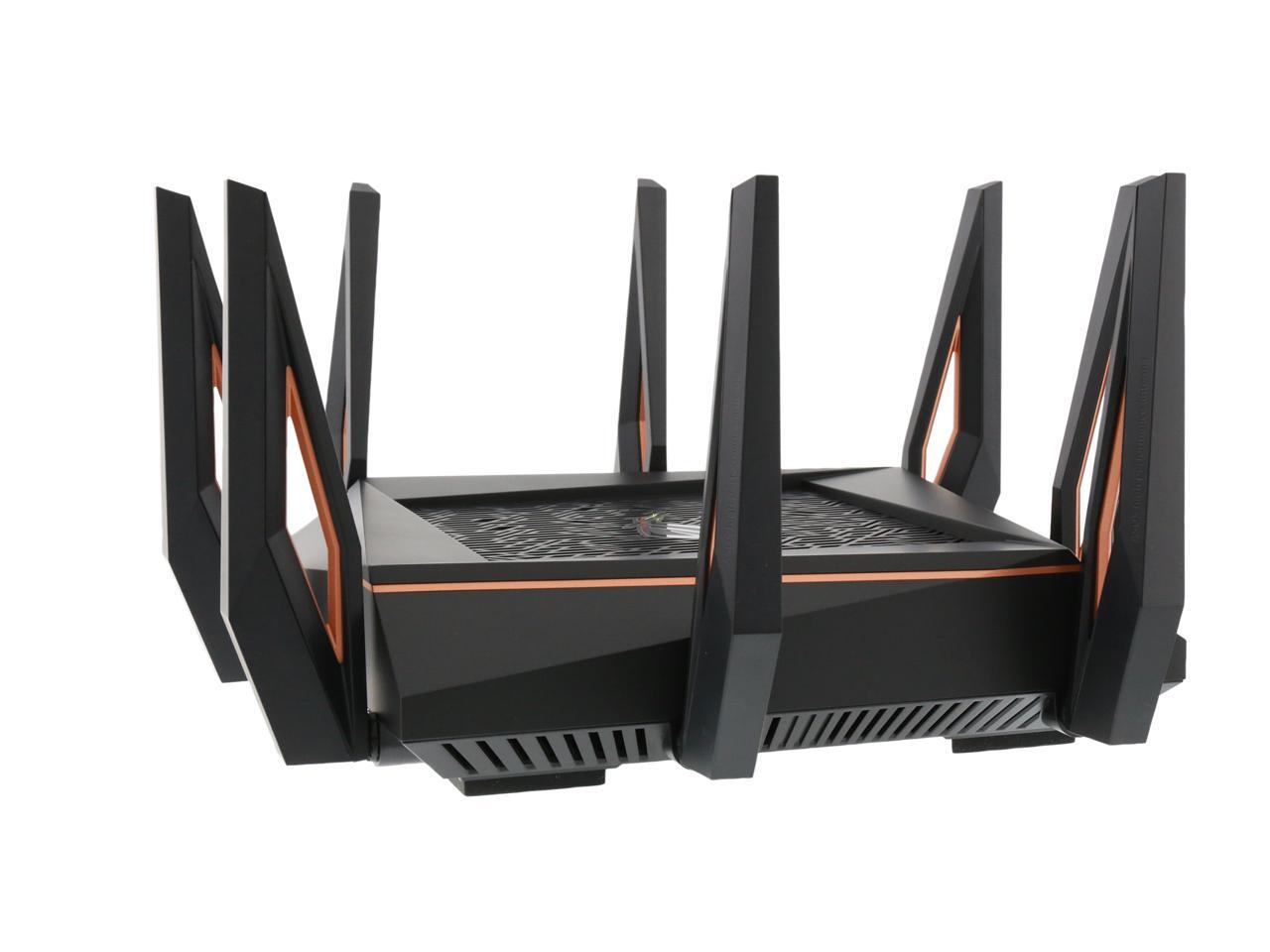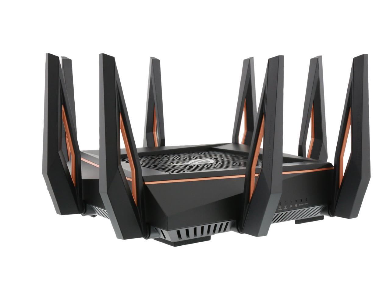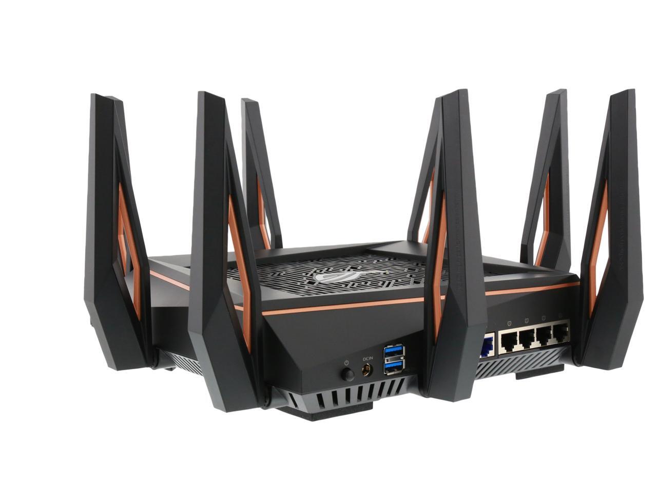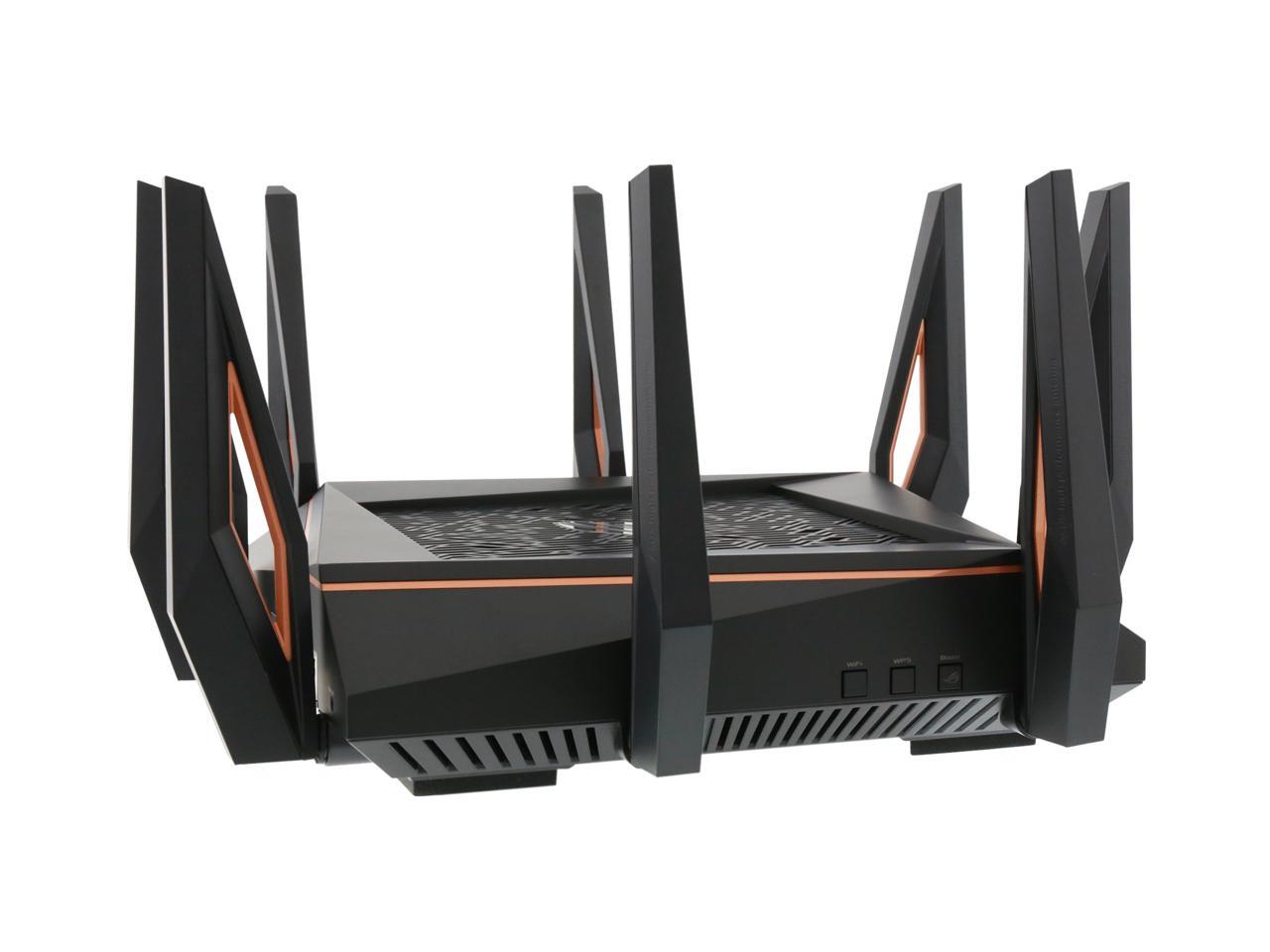 | Features | Link Aggregation - 802.3ad MU-MIMO Traffic Analyzer Adaptive QoS WTFast Gamers Private Network AiProtection Pro Parental Control Guest Network : 2.4 GHz x 3, 5 GHz-1 x 3, 5 GHz-2 x 3 VPN server : IPSec Pass-Through, PPTP Pass-Through, L2TP Pass-Through, PPTP Server, OpenVPN Server VPN client : PPTP client, L2TP client, OpenVPN client Mac OS Backup Enhanced media server (AiPlayer app compatible) - Image : Jpeg - Audio : mp3, wma, wav, pcm, mp4, lpcm, ogg - Video : asf, avi, divx, mpeg, mpg, ts, vob, wmv, mkv, mov AiCloud personal cloud service 3G/4G data sharing Printer Server - Multifunctional printer support (Windows only) - LPR protocol support Download Master - Support bt, nzb, http, ed2k - Support encryption, DHT, PEX and magnet link - Upload and download bandwidth control - Download scheduling AiDisk file server - Samba and FTP server with account management Dual WAN IPTV support Roaming Assist |