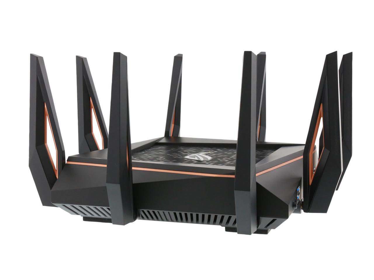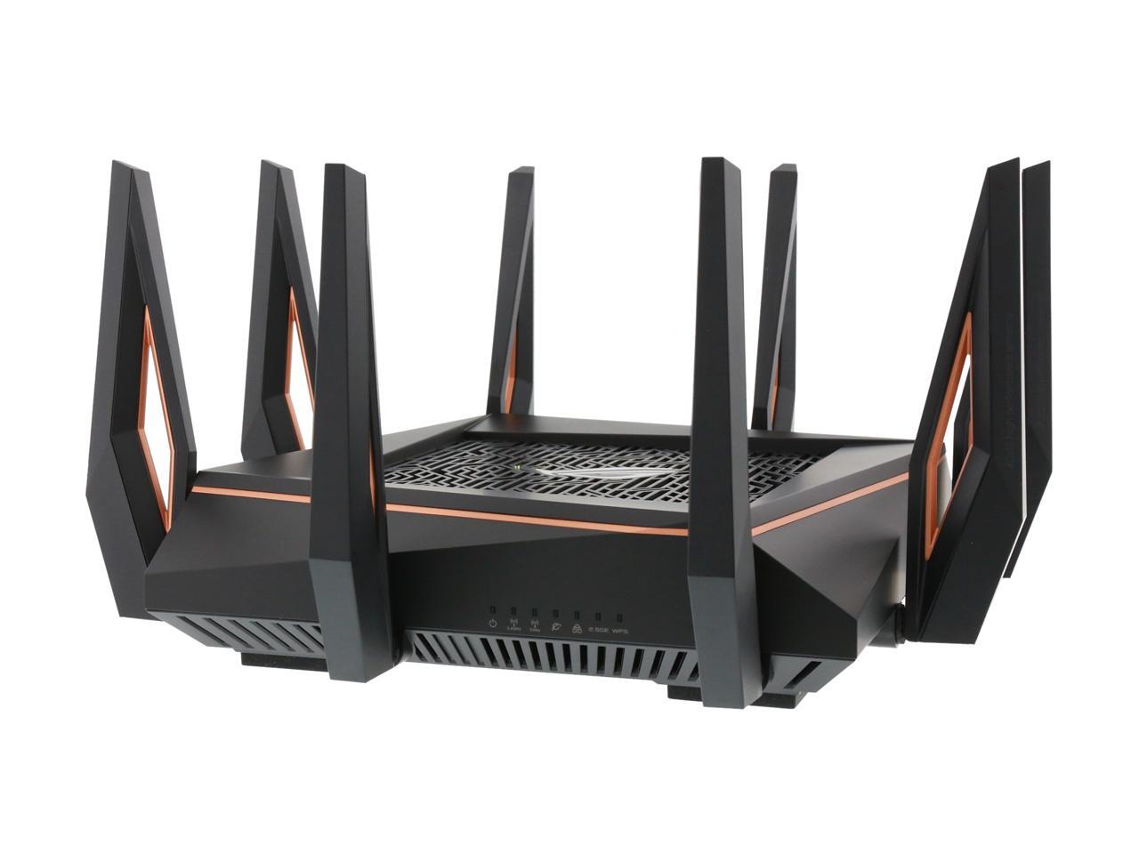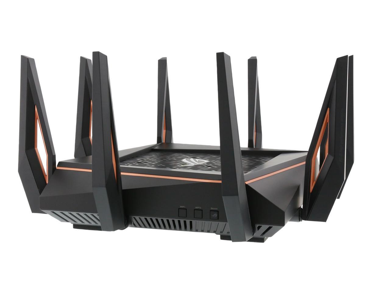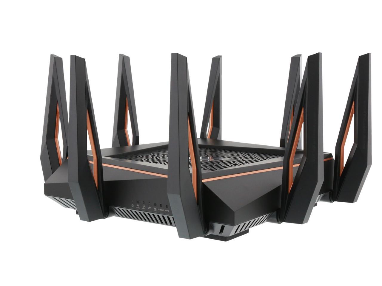| Features | Link Aggregation - 802.3ad MU-MIMO Traffic Analyzer Adaptive QoS WTFast Gamers Private Network AiProtection Pro Parental Control Guest Network : 2.4 GHz x 3, 5 GHz-1 x 3, 5 GHz-2 x 3 VPN server : IPSec Pass-Through, PPTP Pass-Through, L2TP Pass-Through, PPTP Server, OpenVPN Server VPN client : PPTP client, L2TP client, OpenVPN client Mac OS Backup Enhanced media server (AiPlayer app compatible) - Image : Jpeg - Audio : mp3, wma, wav, pcm, mp4, lpcm, ogg - Video : asf, avi, divx, mpeg, mpg, ts, vob, wmv, mkv, mov AiCloud personal cloud service 3G/4G data sharing Printer Server - Multifunctional printer support (Windows only) - LPR protocol support Download Master - Support bt, nzb, http, ed2k - Support encryption, DHT, PEX and magnet link - Upload and download bandwidth control - Download scheduling AiDisk file server - Samba and FTP server with account management Dual WAN IPTV support Roaming Assist |