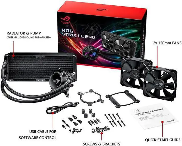 ASUS ROG STRIX LC 240 RGB AIO Liquid CPU Cooler 240mm Dual 120mm Fans Radiator