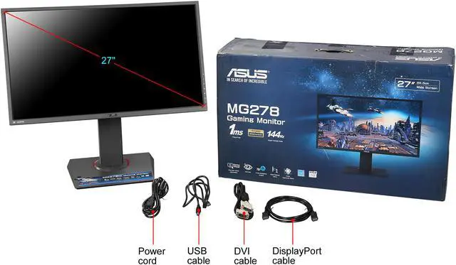 Asus MG278Q 27" 2K WQHD 2560x1440 144Hz 1ms G-Sync 2xHDMI DisplayPort DVI-D Built-in Speakers FlickerFree G-Sync Super Narrow Bezel Gaming Monitor