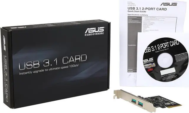 10Gbit/s data-transfer speeds - twice as fast as USB 3.0 Most popular dual Type-A connectors plus backward compatibility Fits in any PCIe x4, x8, x16 slot Even faster USB 3.1 transfers with included ASUS USB 3.1 Boost utility