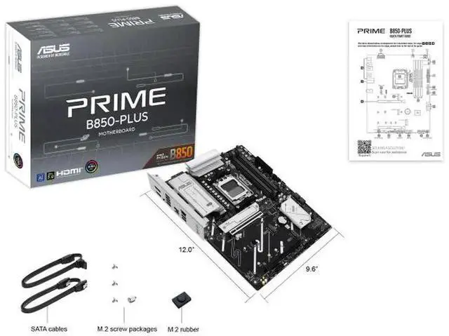 ASUS PRIME B850-PLUS AMD B850 ATX motherboard AM5 DDR5, PCle 5.0 Ready, three M.2slots, Realtek 2.5Gb Ethernet,DisplayPort, rear USB10Gbps Type-A & Type-c, BlOS FlashBack, Aura Sync