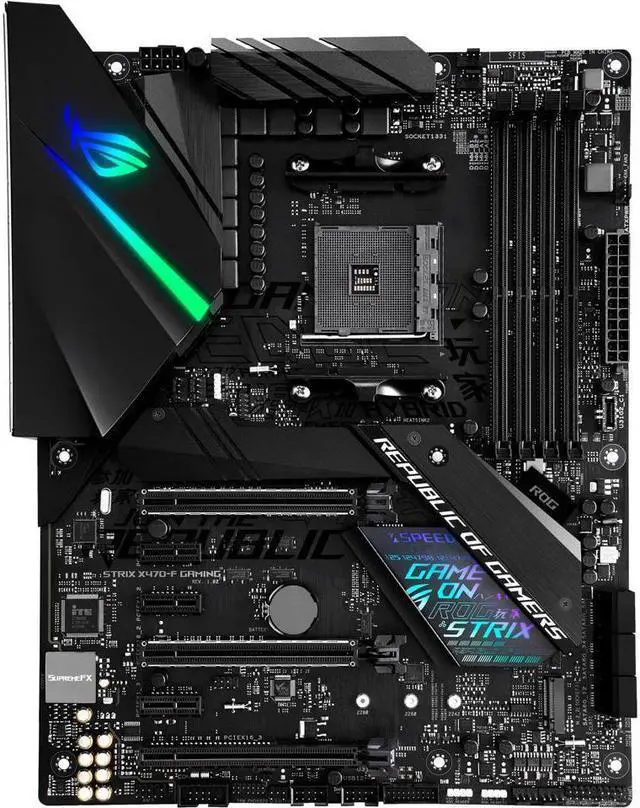 Experience next-level performance and personalization options with the ROG Strix X470-F Gaming, powered by AMD Ryzen 2 AM4 processors. Unlock full calibration and customization with 5-Way Optimization featuring Fan Xpert 4, Aura Sync RGB lighting and 3D printing mounts. Onboard dual NVMe M. 2 and front-panel USB 3.1 Gen2 delivers maximum connectivity speeds.