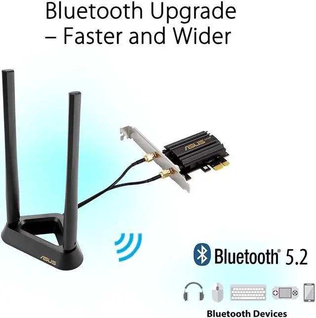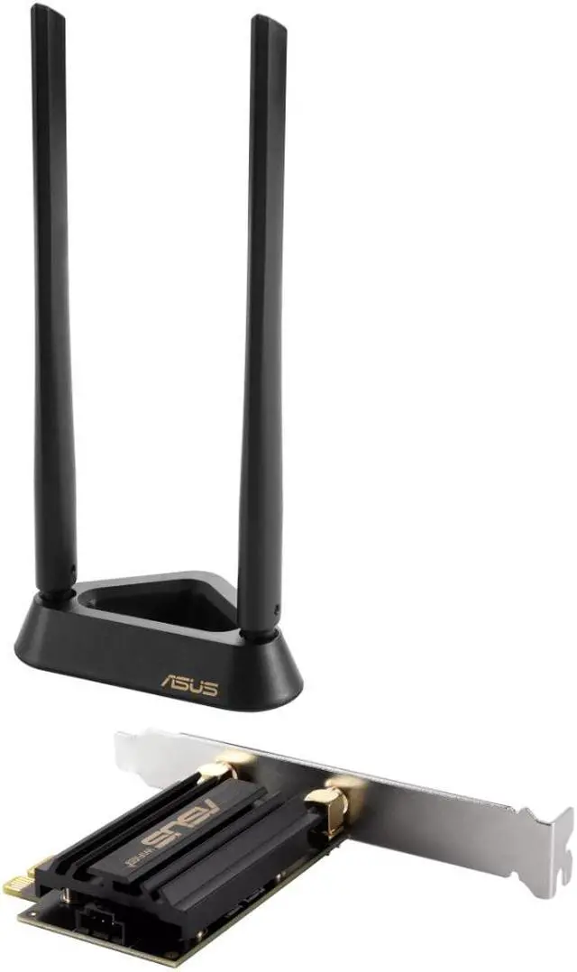 ASUS PCE-AXE59BT WiFi6 6E AX5400 PCI-E Adapter with 2 External Antennas and magnetized Base. Supporting 6GHz Band, 160MHz, Bluetooth 5.2, WPA3 Network Security, OFDMA and MU-MIMO