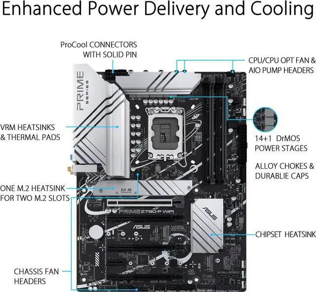 Enhanced Power Solution: 14+1 DrMOS, ProCool connector, alloy chokes and durable capacitors for stable power delivery