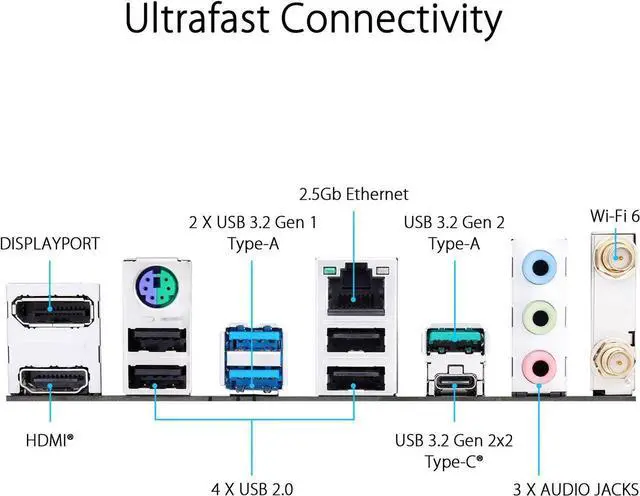 Ultrafast Connectivity: PCIe 5.0, DDR5, WiFi 6, Realtek 2.5G b Ethernet, USB 3.2 Gen 2x2 Type-C, front panel USB 3.2 Gen 2 Type-C, Thunderbolt 4 (USB4) header support