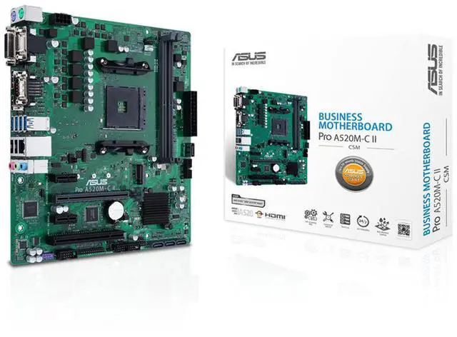 ASUS A520M-C II/CSM Desktop Motherboard - AMD Chipset - Socket AM4 - Micro ATX - Ryzen 3, Ryzen 5, Ryzen 7, Ryzen 9, Ryzen 3 PRO, Ryzen 5 Pro, Ryzen 7 PRO, Ryzen 9 PRO Processor Supported DDR4 SDRAM M