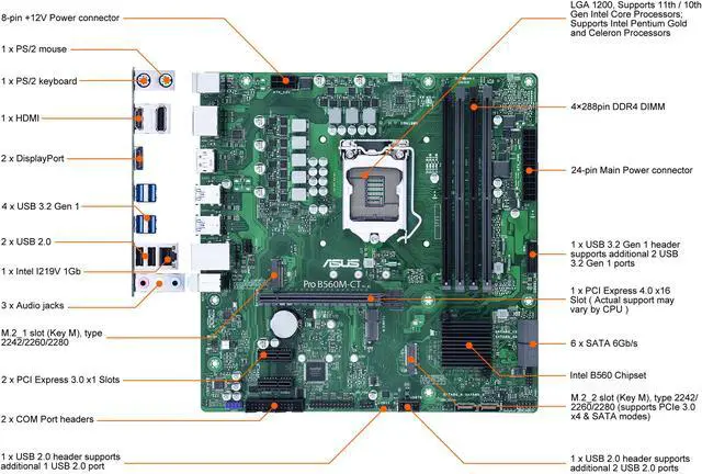 Special Features: ASUS EZ DIY - Box Headers Bespoke Motherboard Design & Business Focused Features: - ASUS Self Recovering BIOS - ASUS Event Log - ASUS Commercial BIOS kit - Anti-Moisture - 24/7 Reliability - Overcurrent Protection TPM2.0 IC Onboard