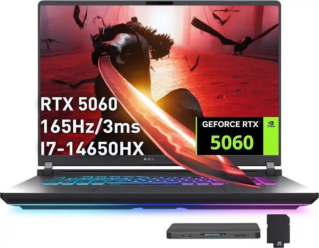 The ASUS ROG Strix G16 16" FHD+ 165Hz Gaming Laptop delivers powerful performance with its Intel Core i7-14650HX processor and NVIDIA GeForce RTX 5060 graphics, offering ultra-smooth gameplay, fast multitasking, and stunning visuals for an immersive gaming experience.
