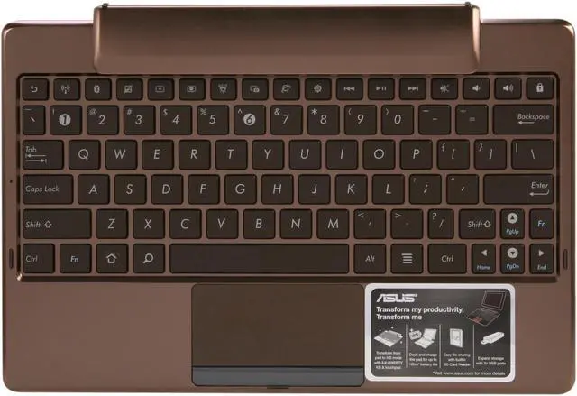 The ASUS TF101 Keyboard Docking Station provides access to a full QWERTY keyboard along with unique Android Function keys, turning the tablet Transformer into a full-fledged notebook. A touchpad, 3.5mm audio jack, two USB ports as well as a built-in SD Card reader for easy file sharing and storage expandability makes the Transformer a versatile media hub. The docking station also adds up to 8 hours of extra battery life, so users can use it all day for work and play.