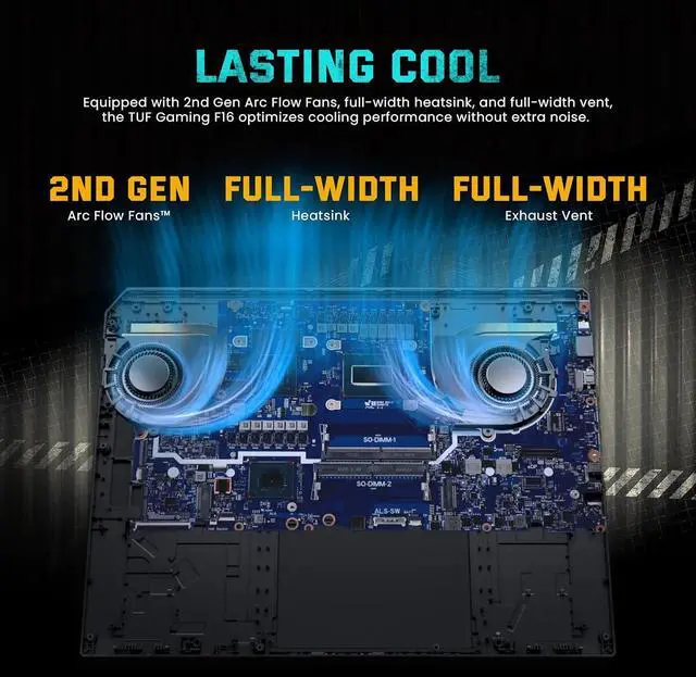 RGB Backlit Keyboard: See every key clearly in the dark, ideal for late-night gaming or creative work. Cooling System: Uses 2nd Gen Arc Flow Fans, full-width heatsink, and dust filters for optimized cooling.