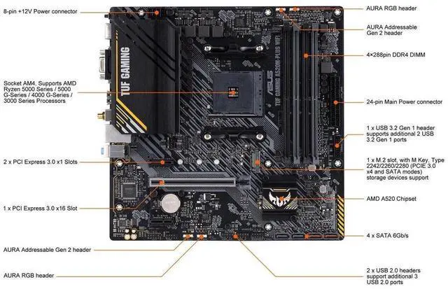 Gaming Look and Feel: ASUS-exclusive Aura Sync RGB lighting, including RGB headers and a Gen 2 addressable RGB header for greater customization
