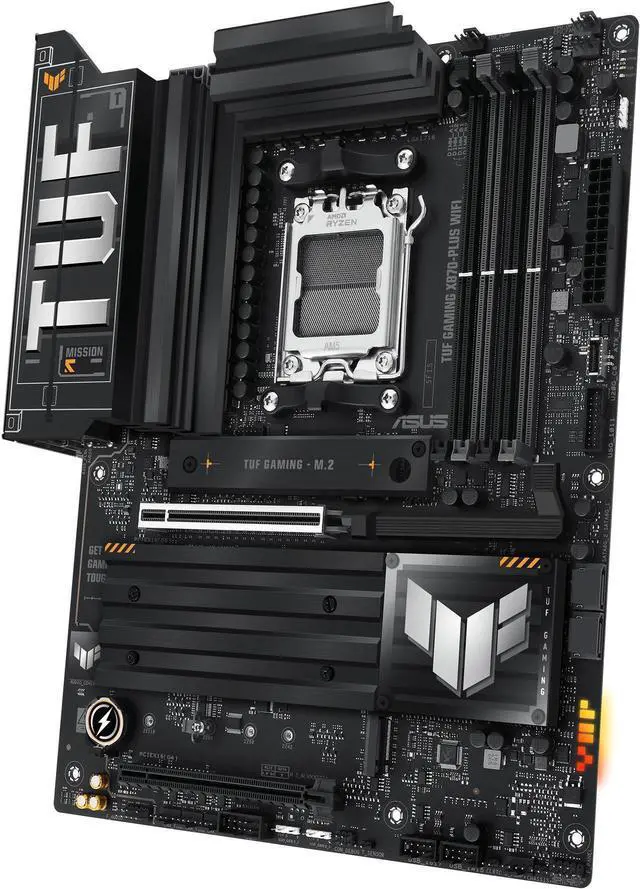 Support: Two onboard PCIe 5.0 M. 2 slots and two PCIe 4.0 M. 2 slots, with massive M. 2 heatsinks